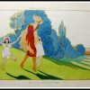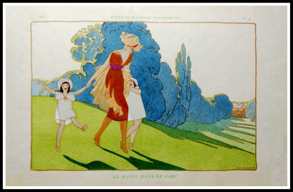 André Marty – Original lithography pochoir – Art Deco – Le matin dans le parc – Plate II – 1919