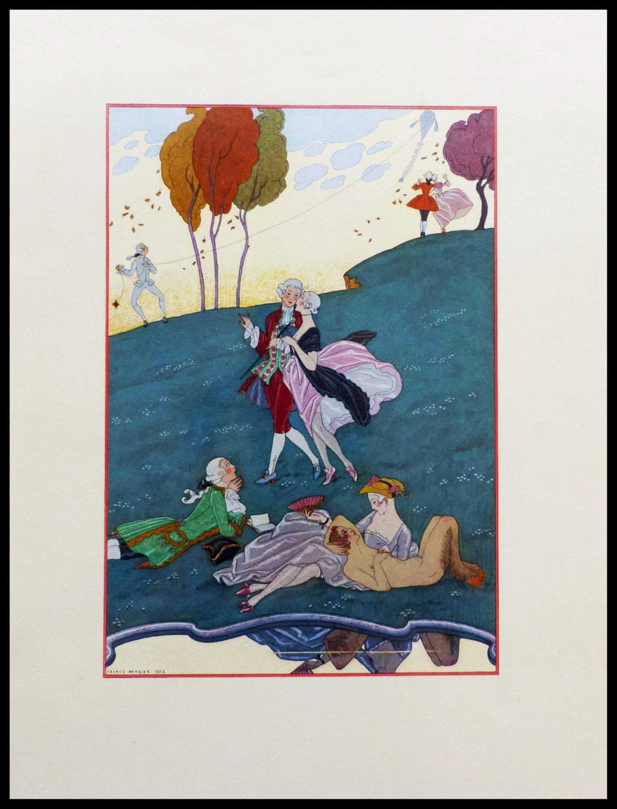 Georges Barbier – Original lithography Pochoir – scène bucolique – 1928