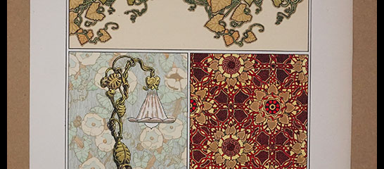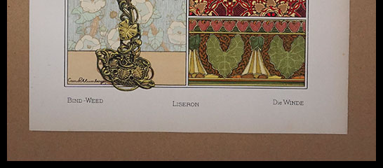 GRASSET Eugène original lithography pochoir, La plante et ses applications ornementales, Bind-Weed, plate 54, 1896
