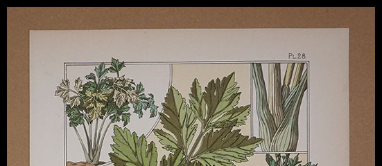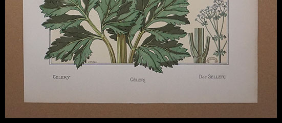 GRASSET Eugène : original lithography pochoir, La plante et ses applications ornementales, Celery, plate 28, 1896