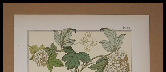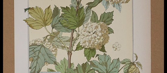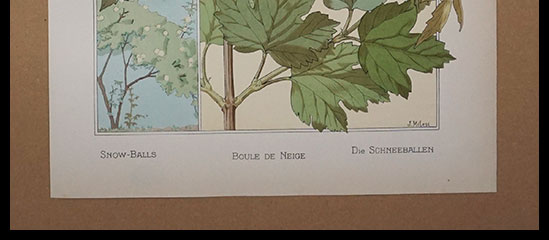 GRASSET Eugène original lithography pochoir, La plante et ses applications ornementales, snow balls, plate 49, 1896