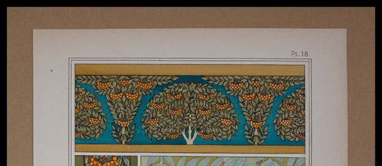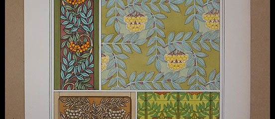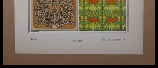 GRASSET Eugène : original lithography pochoir, La plante et ses applications ornementales, Sorb, plate 18, 1896