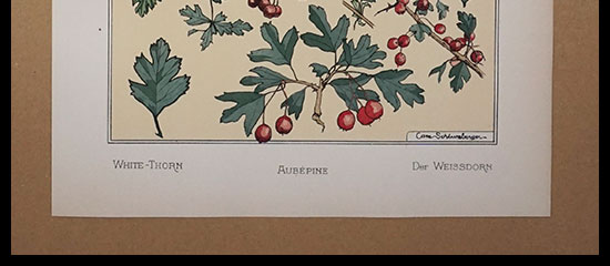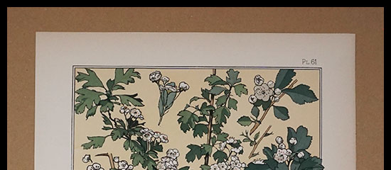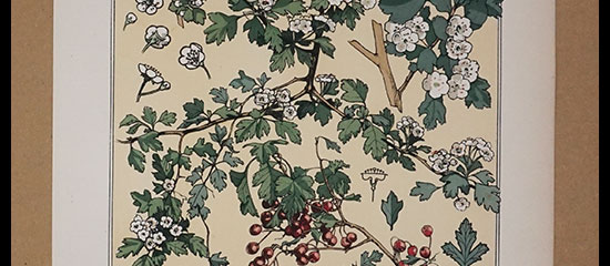 GRASSET Eugène original lithography pochoir, La plante et ses applications ornementales, White-Thorn, plate 61, 1896