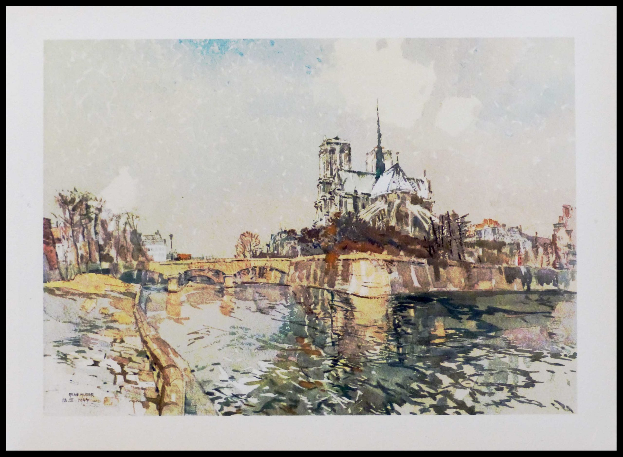 Heliogravure René KUDER – the bridges of PARIS, the archbishop’s bridge Notre Dame – Limited Edition 1946