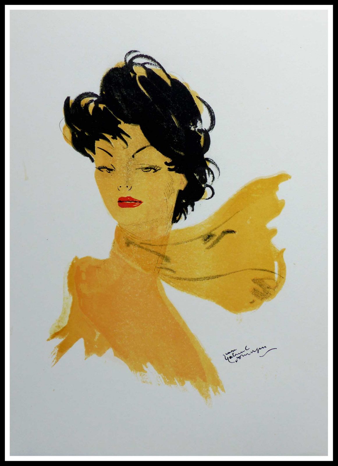 Jean Gabriel Domergue – Original lithography Pochoir – The beautiful unknown – Domergue -1956