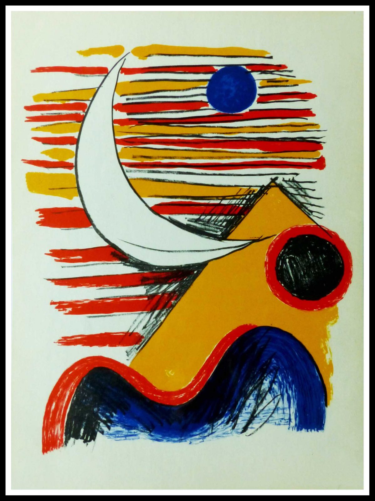 Lithography Calder Alexander – La lune et la montagne jaune – 1961