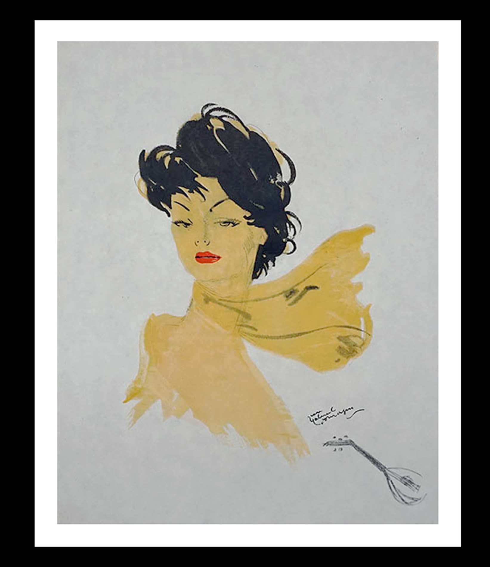 original lithography pochoir Jean Gabriel Domergue – La Parisienne – Gigi la secrétaire – 1956