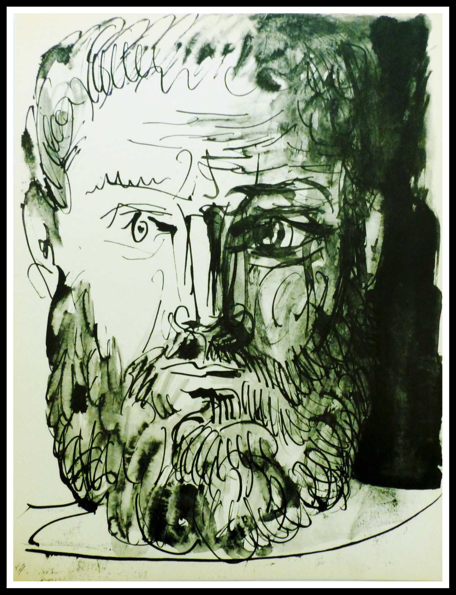 Pablo PICASSO – Homme barbu de face – monochrome plate, Buffon, 1957