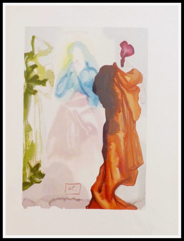 Divine Comédie poem by Dante Saint Bernard priant woodcut signed in the plate